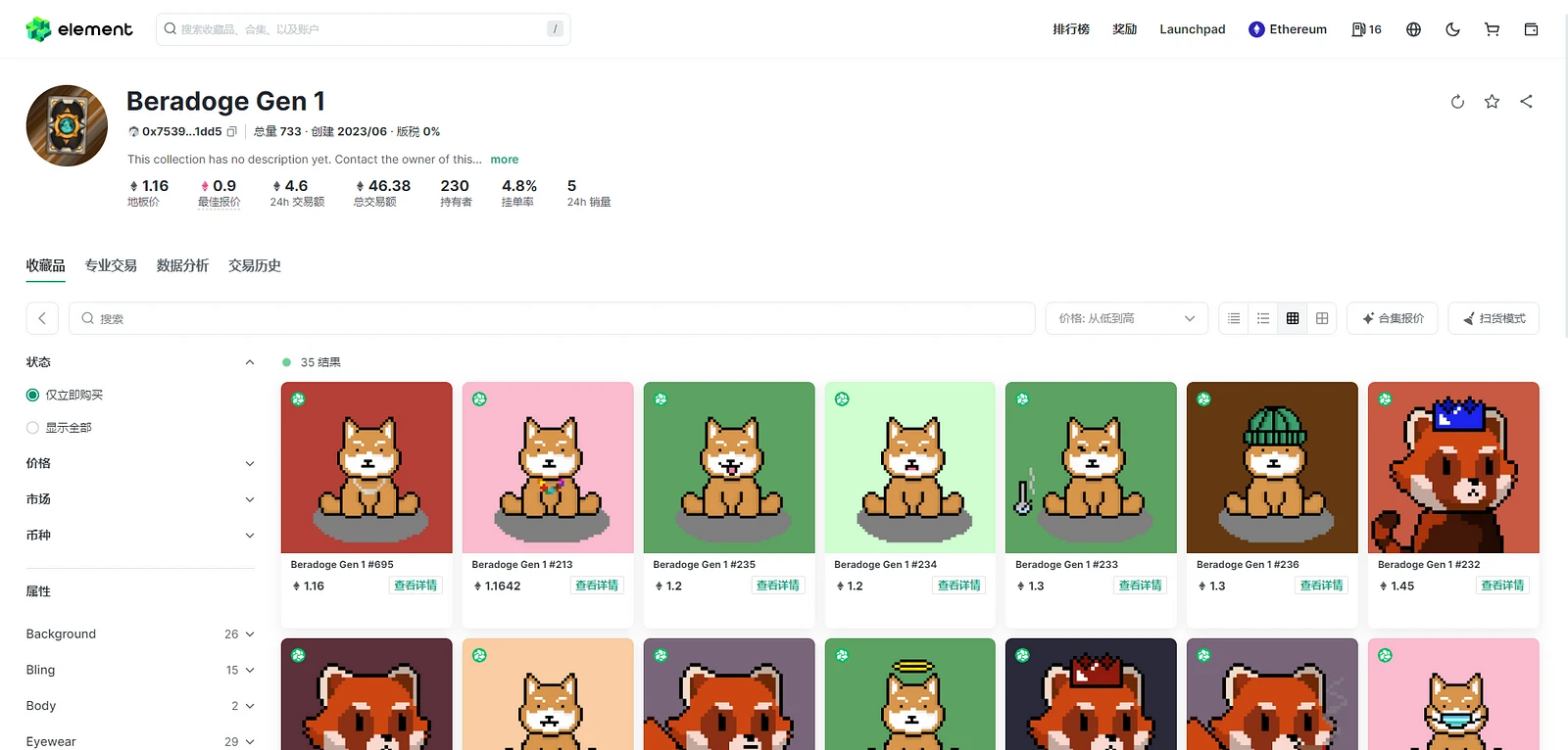Beradoge(BDOGE)是 Berachain 上备受瞩目的 Meme 项目。该项目拥有两个 NFT 系列,分别是“Beradoge Gen 1 ”和最近铸造的“Mibidiots”。据项目方所说,持有这两个系列的 NFT,将会被授予“一大堆的无用东西”,或者“一大堆的 BDOGE”。此外,有传言称 BDOGE 也可能会空投给其他 Berachain 项目的 NFT 持有者。
