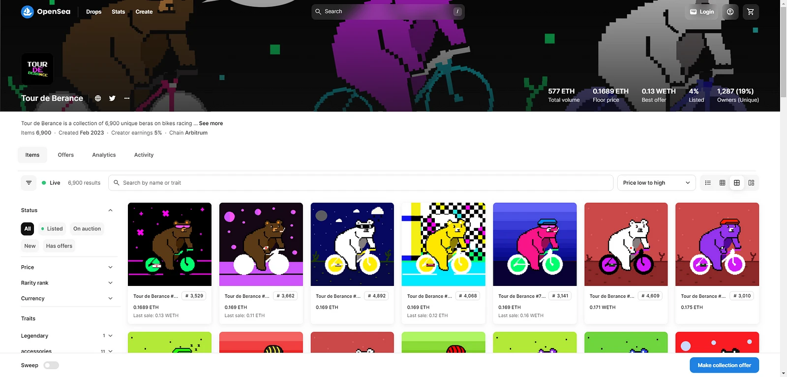 Beradrome 是 Berachain 上的 DEX 和 Restaking 流动性市场,拥有 ve(3 , 3)代币经济学、内置贿赂、投票等机制。团队在一年前推出了名为 “Tour de Berance ”的 NFT 系列,该系列通常被戏称为“Beras on Bikes”。并且该团队明确表示,持有该系列 NFT 将享有在 Berachain 上线时的 rebase 权益,并有望在未来获得 BERO 或 hiBERO 代币的空投。不仅如此,Tour de Berance 的持有者已经从该项目方在 Base 链启动的另一个项目中获得了 oWIG 的空投。