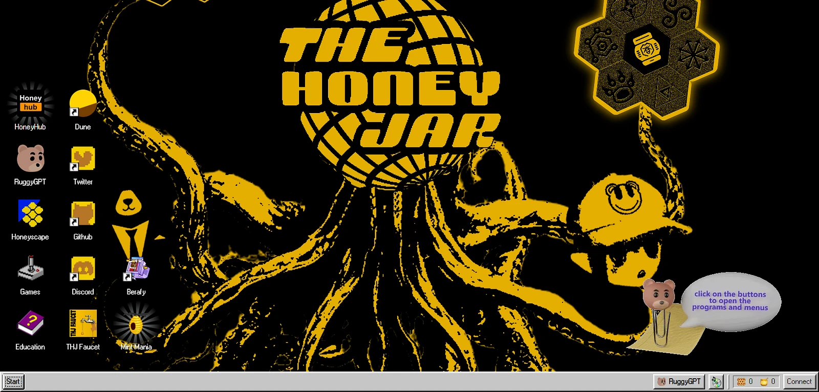 the honey jar 是 Berachain 生态的入口,在社区中占据着相当大的话语权,负责教育用户、生态项目孵化宣传和各种项目的合作撮合。其网页制作成了电脑桌面的样式,与 Berachain 有关的信息都放在了各个“软件”中。