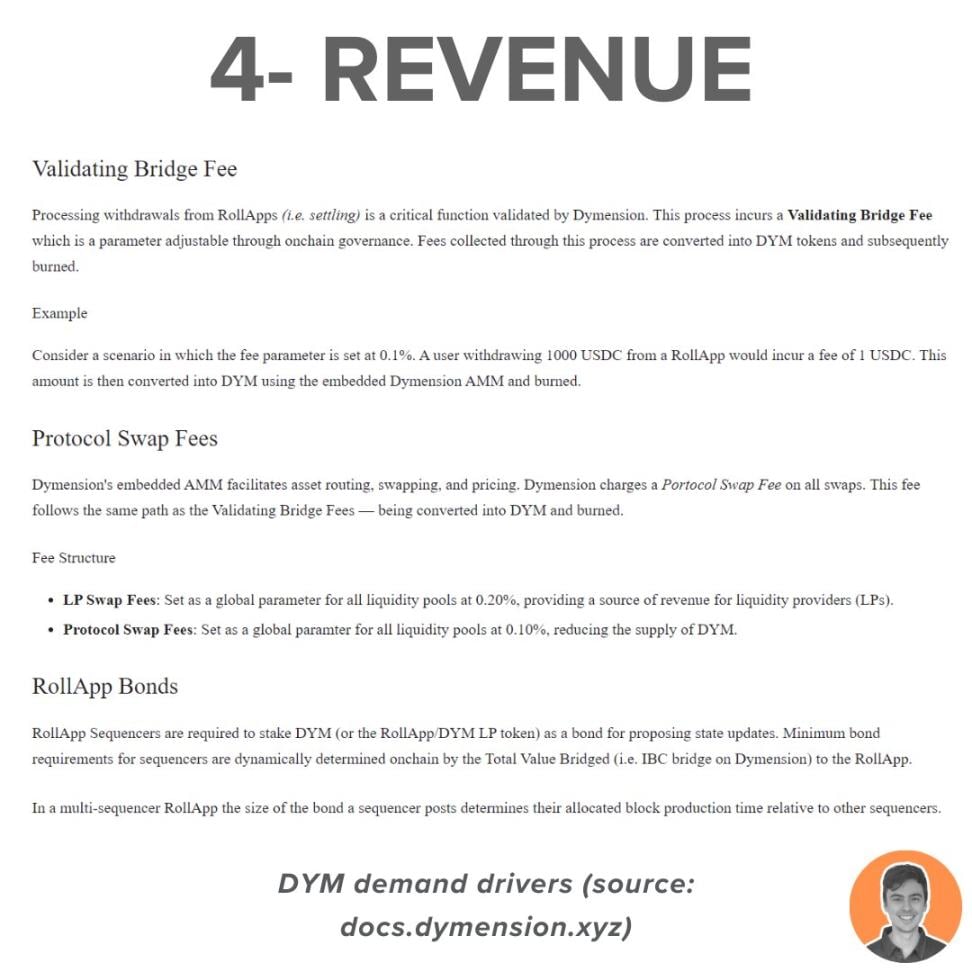 - 交易费用:费用在 DYM 验证者和质押者之间分配