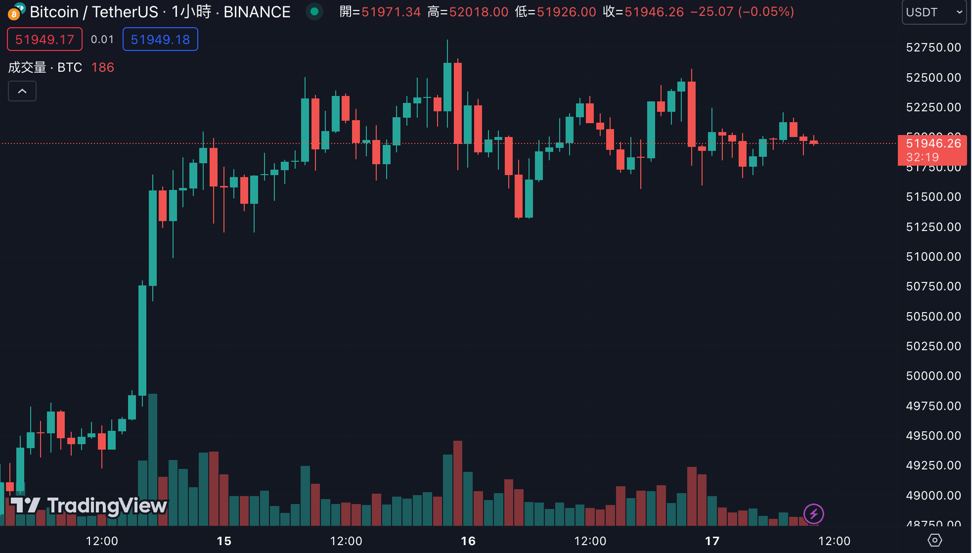 币价方面,比特币价格昨晚再度突破 52,000 美元大关,最高站上 52,572 美元后,随即回落至 5.2 万美元区间震盪,截稿前报 51,959 美元,近 24 小时小跌 0.2%。