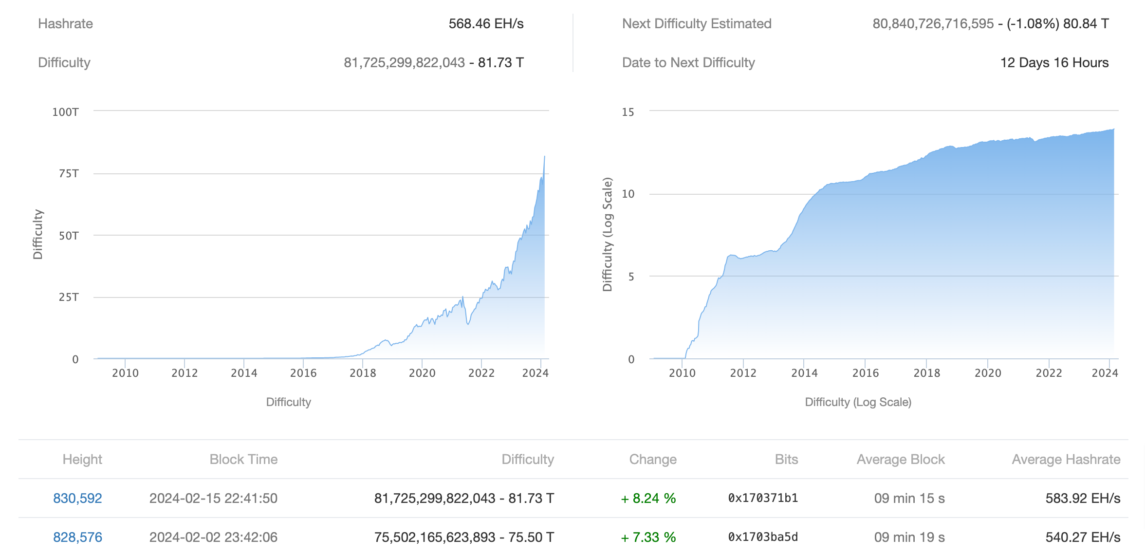 而在现货 ETF 涌入的强劲资金潮,推动币价抬升的背景下,比特币挖矿难度再创历史新高,加剧矿企间的竞争。