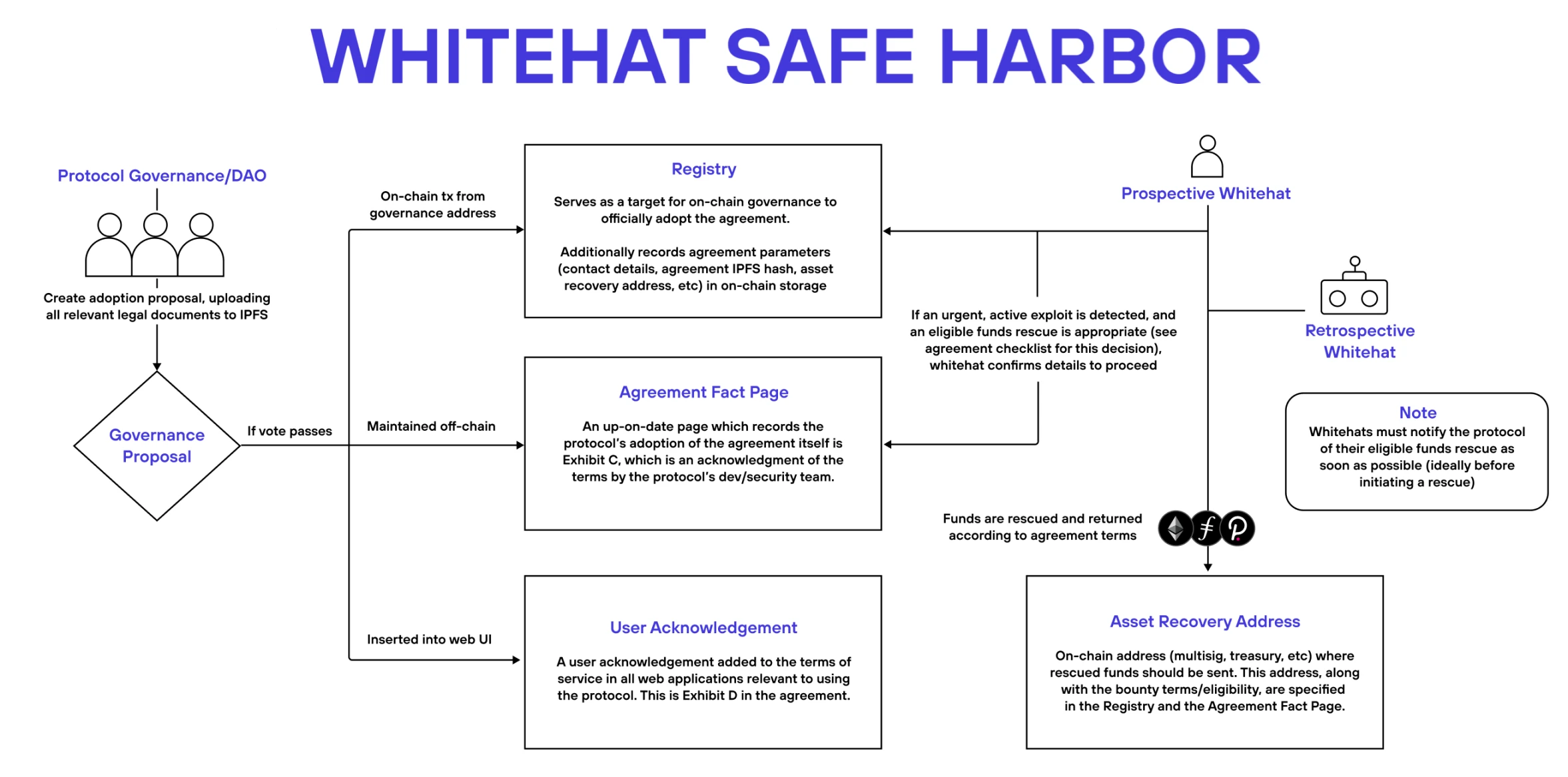 也就是说它类似于漏洞赏金,如果协议在主动攻击事件发生之前采用了安全港协议,白帽黑客将清楚地了解自己可以如何在潜在的救援中采取行动,譬如: