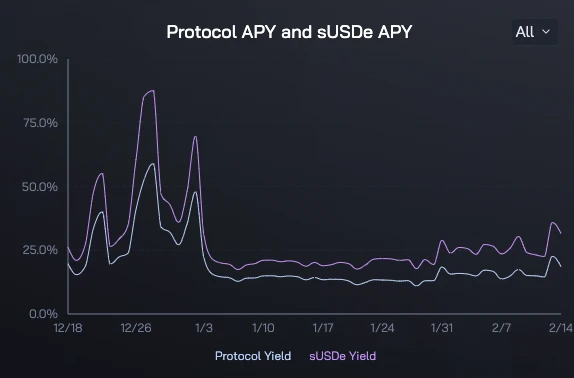 当前,sUSDe 的即时收益率则为 27.6% 。想一想 MakerDAO 此前利用 RWA 实现 8% 收益率时的疯狂景象,就不难理解 Arthur 为何对 USDe 如此有信心了。