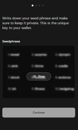 这是你的钱包私钥,如果你的钱包丢失,这是帮助你恢复钱包的唯一途径,因此一定要妥善保管!因为任何拿到这个助记词的人都可以完全控制你的钱包和资产。通常,建议将助记词以物理方式写下来(例如写在小本本上),而不是以电子方式存储 (例如存在电脑文档或手机相册),以避免因设备受损而导致未经授权的访问。