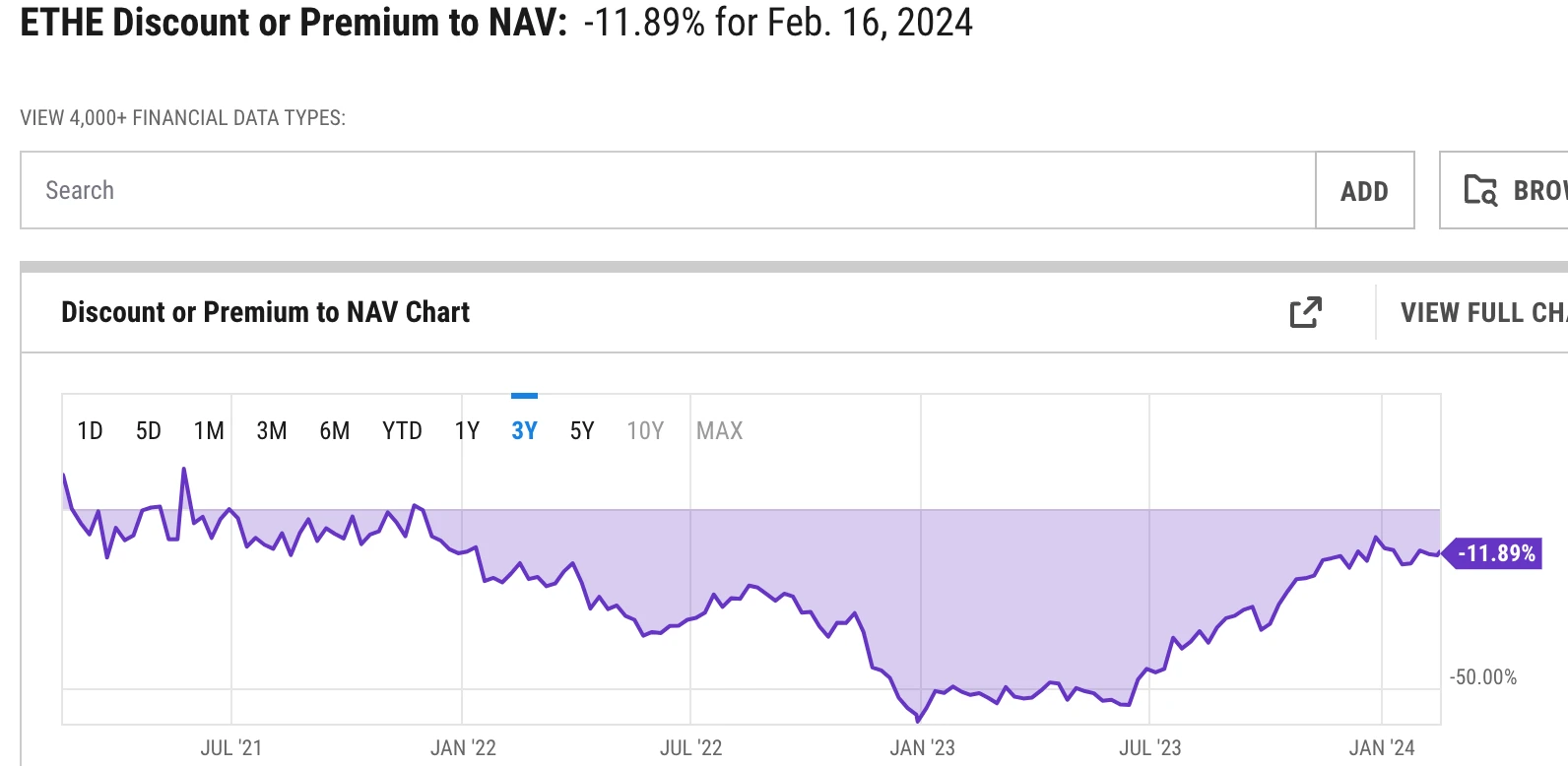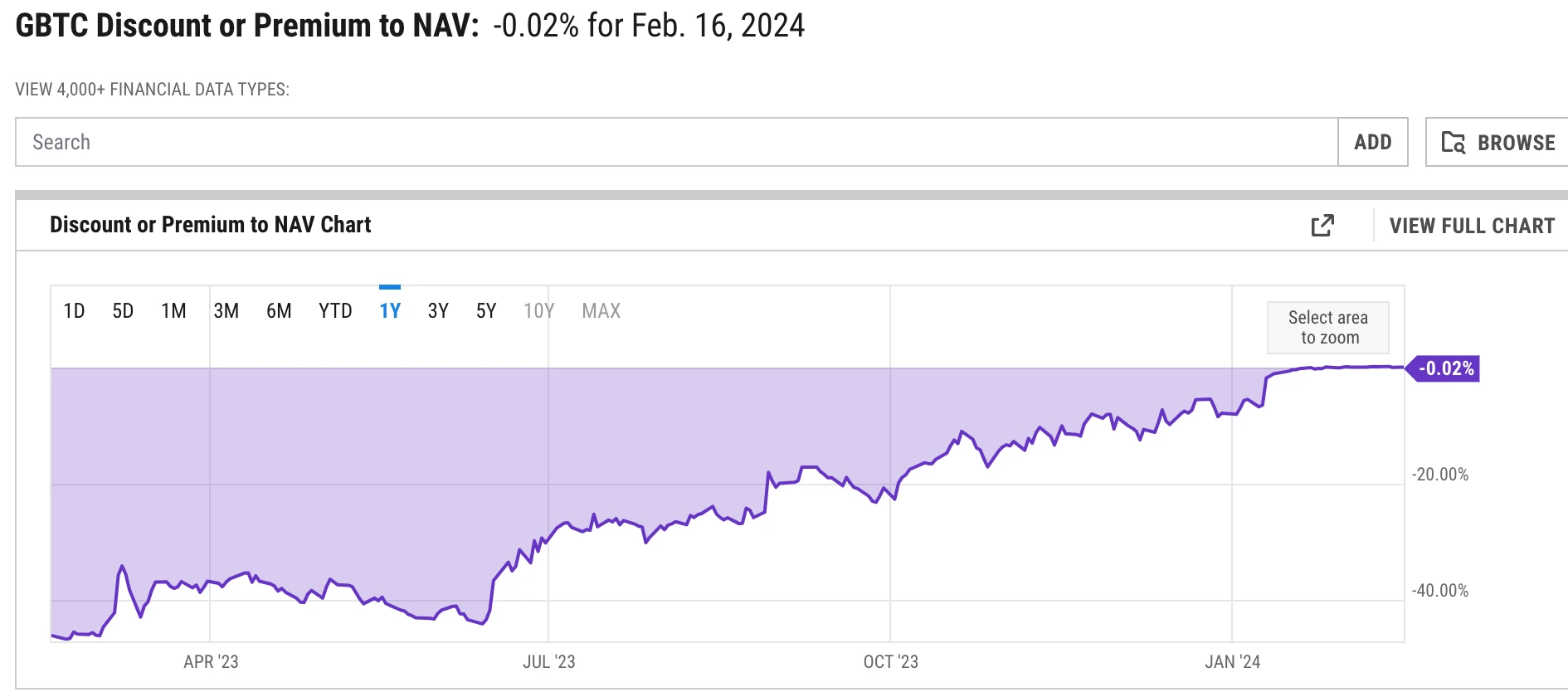 GBTC 通过 ETF 前一周这个折价收窄到 6.x%:
