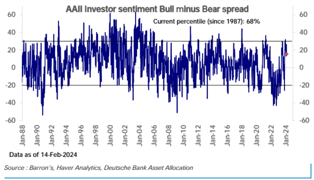 AAII 投资者调查多空差值大幅回落, 87 – 68 百分位,主要由于看空比例上升: