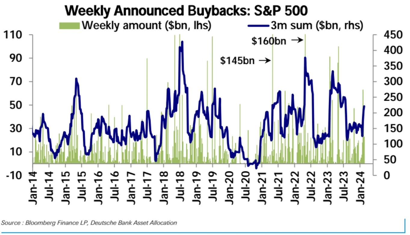 周度资金流向:股票流入 160 亿美元(美国 110 亿,中国 30 亿),债券流入 116 亿美元,黄金流出 6 亿美元,现金流出 184 亿美元(8 周来最大流出)。