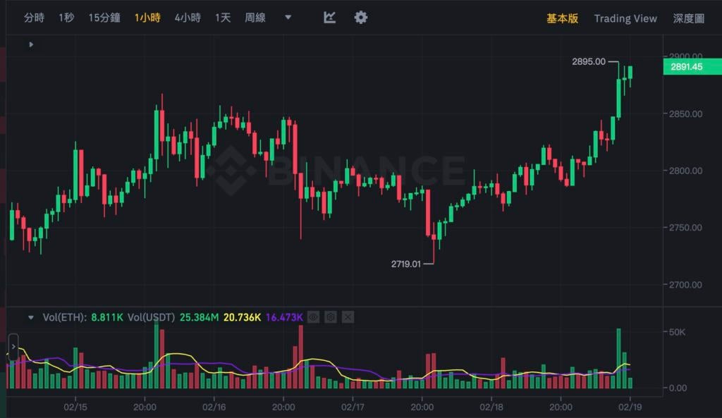 另一方面,以太坊(ETH)近日走势更加强势,周六一度下探 2,719 美元之后就一路震盪上涨,今(19)日清晨六点左右最高来到 2,895 美元、近 24 小时上涨 3.32%,再度刷新 2022 年 5 月以来的价格新高。