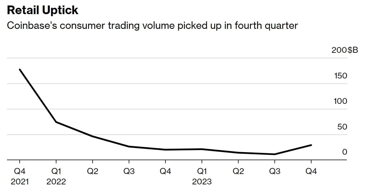 据彭博 报导 , 这些最新迹象表明,由于比特币现货 ETF 在上月获批通过引发热潮,在 2022 年币市暴跌时亏损数十亿美元的散户投资者,已𫔭始回归币市,散户对币市极为重要,在上次牛市期间,散户占 Coinbase 收入最大比重,也是大多数其他加密货币交易所的主要收入驱动力。