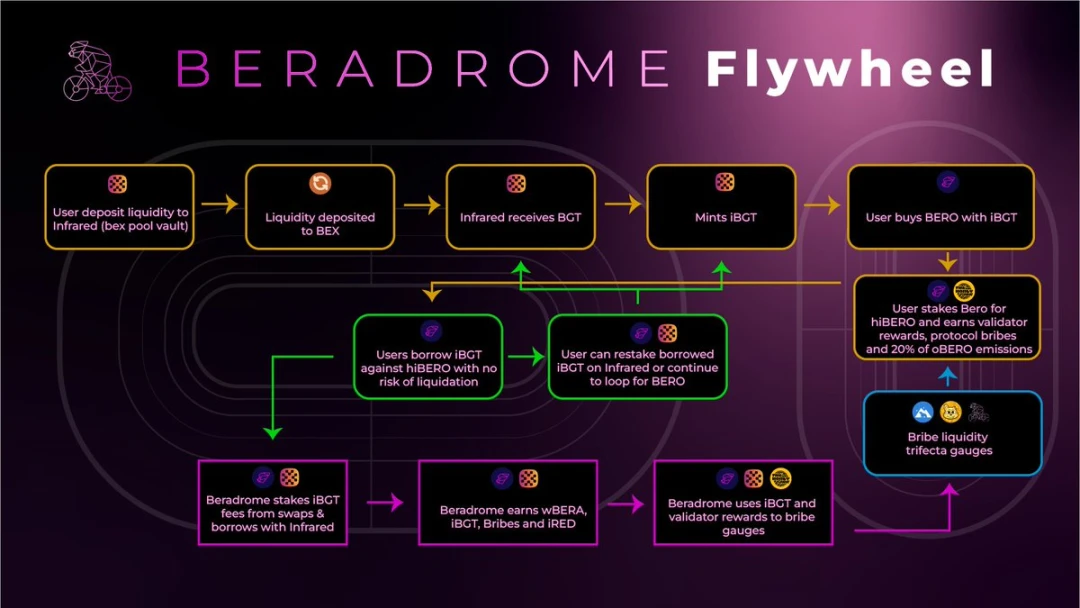 Beradrome 是 Berachain 上再质押与流动性市场,拥有 ve( 3, 3) 代币经济学、内置贿赂、投票等机制。