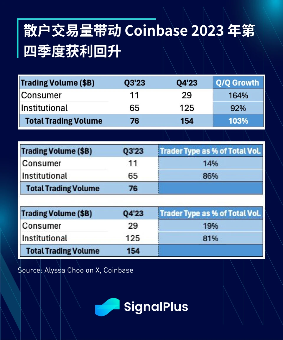 Coinbase 的财报展示了进一步的利好信号,散户交易量较上季度增长了 164% ,而整体交易量增长了 103% 。虽然离散户参与度重回 2021 年底的高峰还有很长的一段路要走,但随著我们走出漫长的寒冬,看到一些主流兴趣的回归仍是令人振奋的。