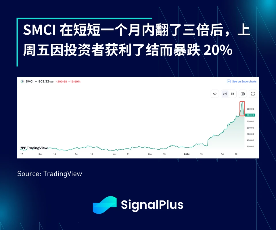美国股市从历史高点小幅回落,SMCI 在 4 周内翻了 3 倍后,上周五盘中暴跌 20% ,Nvidia 将于本周 21 日发布财报,基于市场对 AI 的热情和预期高涨,该公司的获利结果可能会决定未来一个月的整体股市风险情绪。