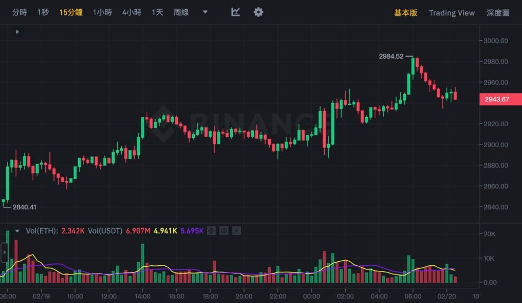 截稿前,ETH 略有下跌报 2,943 美元、近 24 小时上涨 2.42%。