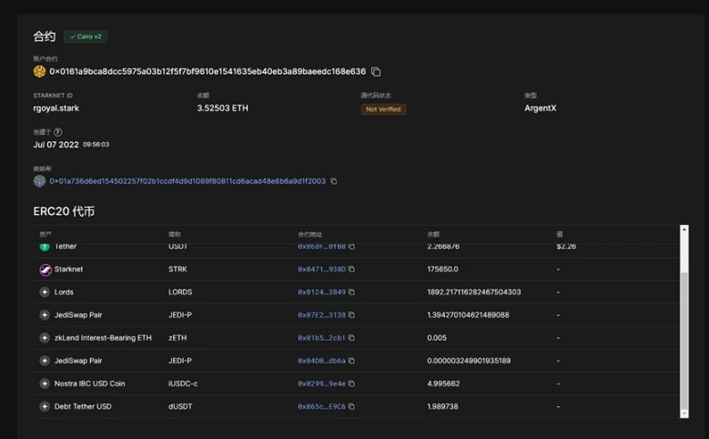 以 0x0161a9bca8dcc5975a03b12f5f7bf9610e1541635eb40eb3a89baeedc168e636 这个地址为例,根据 Starknet 查询网站显示,这个地址可获得的空投代币数量为 180650 个,是单个获得代币最多的地址。但是该地址的链上交互笔数和金额并不多(不过该地址早在 2 年前就已经开始在 Starknet 链上进行交互了)。因而,这个地址的持有者应该是符合早期社区成员计划 (ECMP) 的一员。