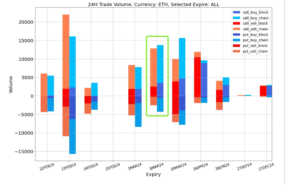 Data Source: Deribit,过去一日 ETH 8 MAR 24 的 OI 增长最为显著