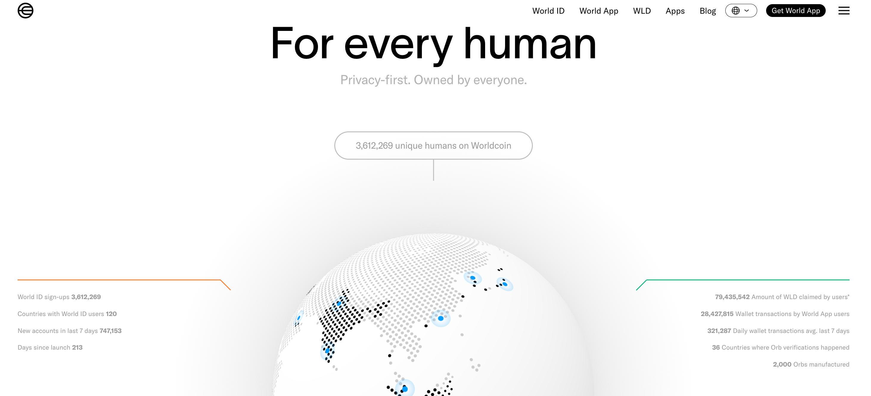 Worldcoin 推出围绕基于生物识别技术构建的 World ID 身份识别系统,让用户能使用 Orb 扫描虹膜,获得 World ID 来证明自己的身份,侭管这项数位身分机制起引发极大的隐私争议(官方声称透过零知识证明来保护用户隐私)但 Worldcoin 的总註册人数 现已快速成长到超过 360 万,自年初以来已飙升逾 100 万人。