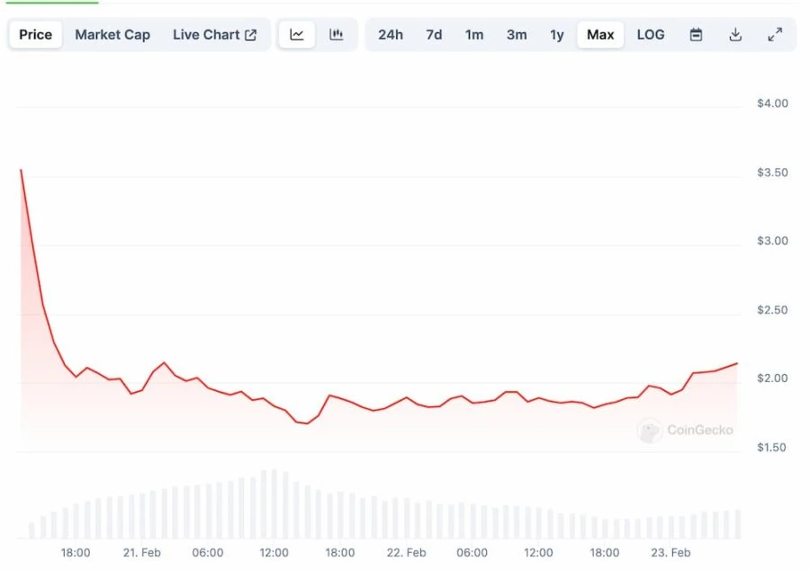 Wintermute 在 STRK 空投前获得的做市代币为 200 万枚(STRK 总量为 100 亿枚),Flow Traders、Amber Group 也为 STRK 做市商。代币启动之后,STRK 在币安上线之初最高价格为 7.71 美元,在 OKX 上为 3.5 美元,随后逐步下跌,在 1.6 美元到 2 美元之间震荡。