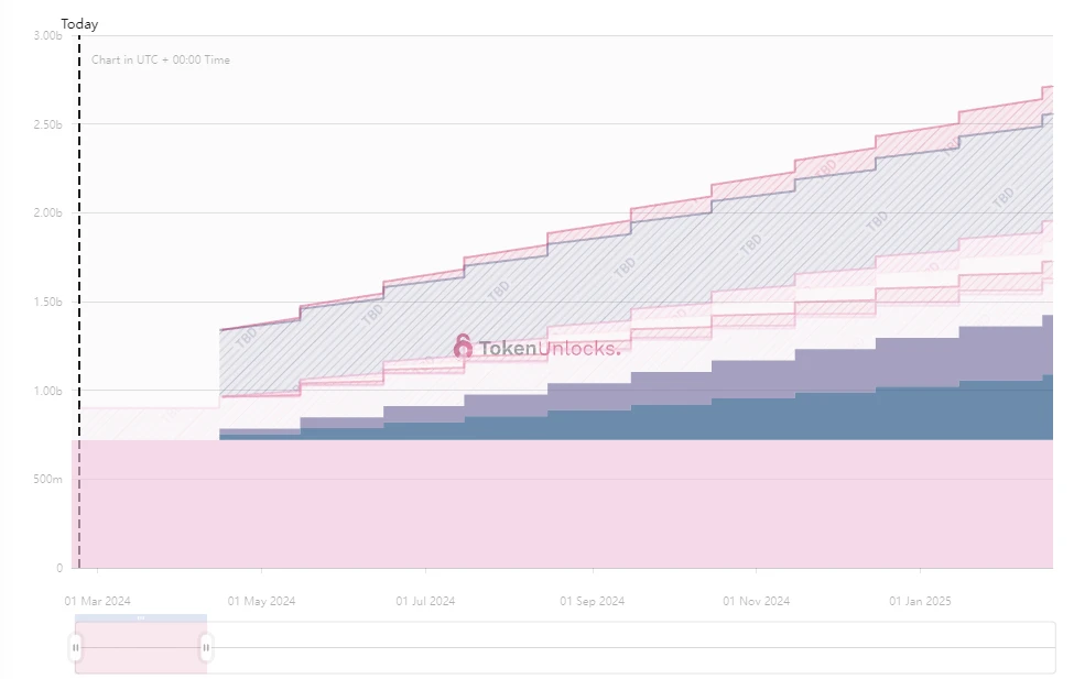 到 2025 年底将逐步解锁 14 亿个额外代币,到 2026 年底将再解锁 15 亿个,到 2027 年 3 月 15 日将解锁 3.8 亿个。