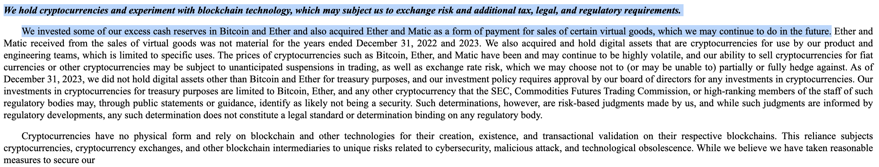 值得关注的是,申请文件揭露,Reddit 将部分超额现金投资于比特币和以太币,该公司还表示,它因为销售虚拟商品,获得了以太币和 MATIC,Reddit 表示未来可能会继续这项策略。