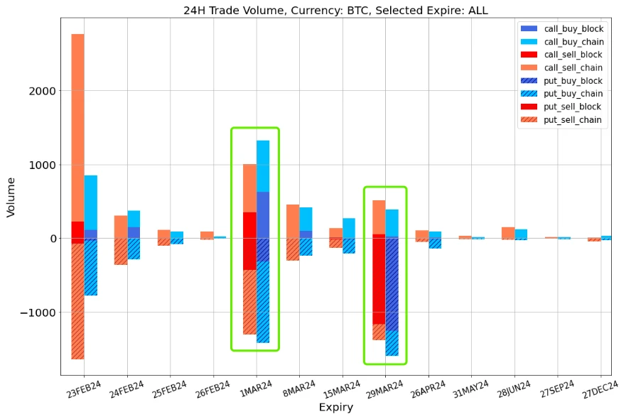 Data Source: Deribit,过去一日 BTC 成交集中在 1 MAR/29 MAR