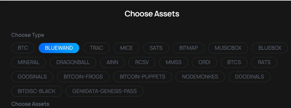其中,BTC 和 BRC-420 资产直接质押即可,BRC-20 代币例如 RATS 需要先铭刻转铭文再转入,以太坊上的资产则通过另一个官方桥链接进行质押。
