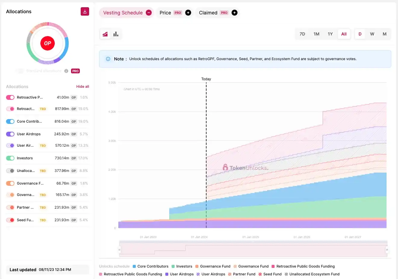 $OP 代币每月的激进解锁一直是代币价格的致命弱点;但正如我所说,相对于未来的流通市值,增量抛售压力将逐渐减弱;