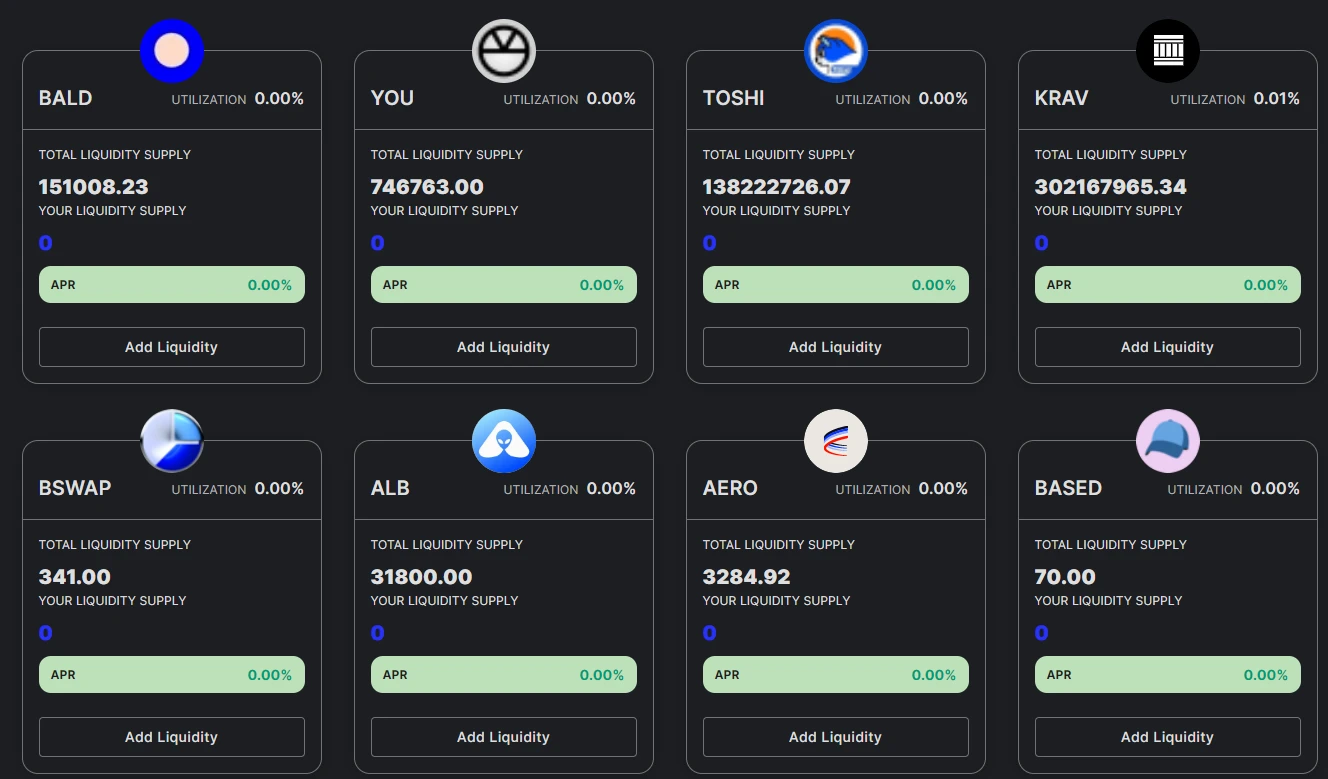 当前 Krav 支持 7 条链上的 Quanto 交易,包括以太坊、Base、Arbitrum、Polygon 等。其中如以太坊上建有 RLB、UNIBOT 的代币池,Base 上有 9 个代币池,Arbitrum 上有去年爆红的 Meme 代币 pogai 等。官方数据页显示,当前提供的流动性达 156 万美元。