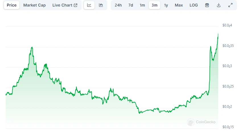 CoinGecko 数据显示,KRAV 当前的市值为 382 万美元,近三个月涨幅为 63% 。若能够顺利实现叙事的增长,仍有较大的增长空间。