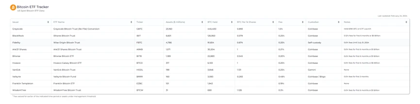 这其中有几方面原因导致:其中最重要的原因是灰度比竞争对手高 6 倍的收费管理费,就目前公布的各个 ETF 的管理费来看。多数 ETF 的管理费维持在 0.49% -0.19% 的区间,只有灰度的管理费仍维持在 1.5% 。是其他对手的约 6 倍。对于投资 ETF 的大资金客户来说,灰度的管理费显然不占优势。另一方面,曾是 GBTC 前十持仓的 Ark 自己建立了 ETF(ARKB),也会将资金转移至自家的 ETF 池中。以及 GBTC 不再具有折价的套利空间,也导致了许多 GBTC 持有者转移仓位。