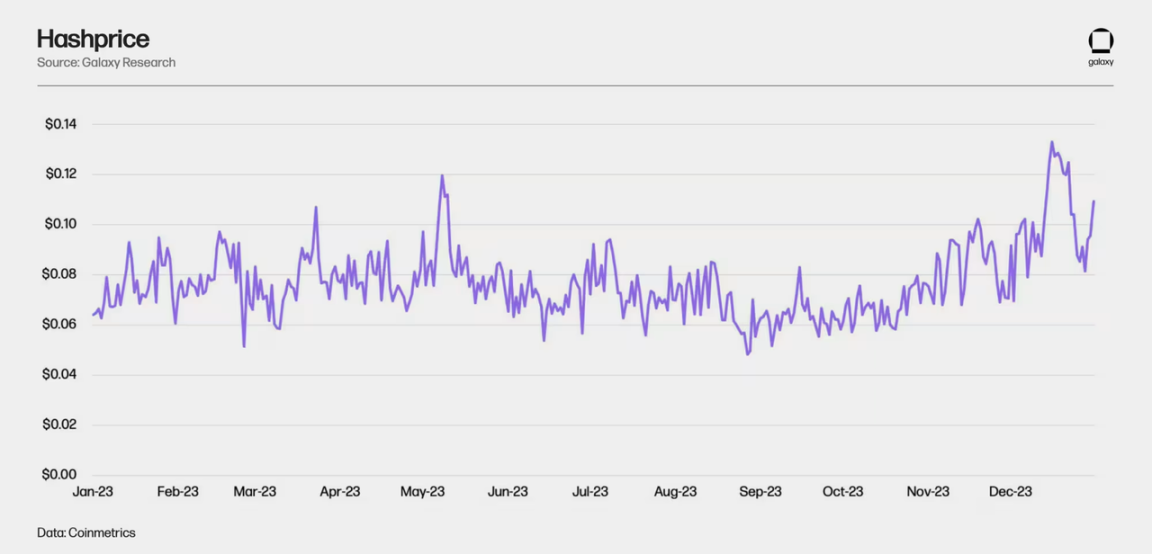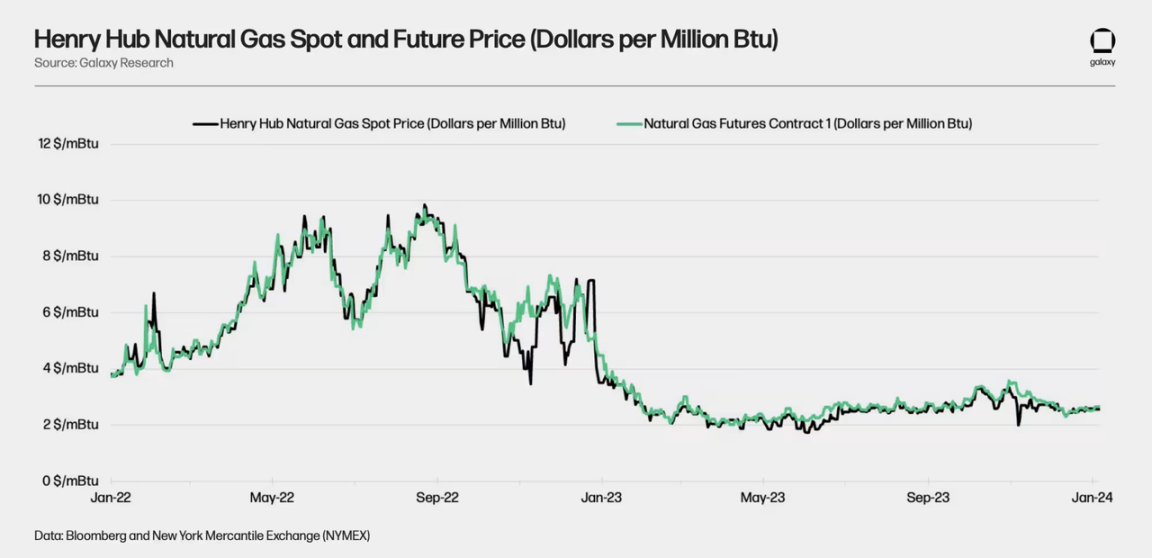 天然气价格于 2023 年下降,降低矿工的能源成本;