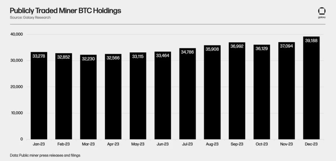 在 2022 年和 2021 年牛市期间,上市矿商在生产中基本上采用了 HODL 策略。随着市场转向和比特币价格下跌,许多上市矿商被迫出售资产,以降低资产负债表杠杆并支付运营成本。此后,上市矿商的资金管理策略已经朝着更加审慎的方向发展,采取平衡的方式持有比特币或直接出售全部比特币以换取现金。随着 2023 年下半年矿业经济的改善,上市矿商变得更加愿意持有更多比特币,并承担可能由于 ETF 和减半故事而产生的价格风险。现在,FASB 已更新其指导意见,允许对上市公司资产负债表上持有的比特币进行公允价值核算,上市矿商可能会在更大程度上重新接受在其资产负债表上持有比特币。