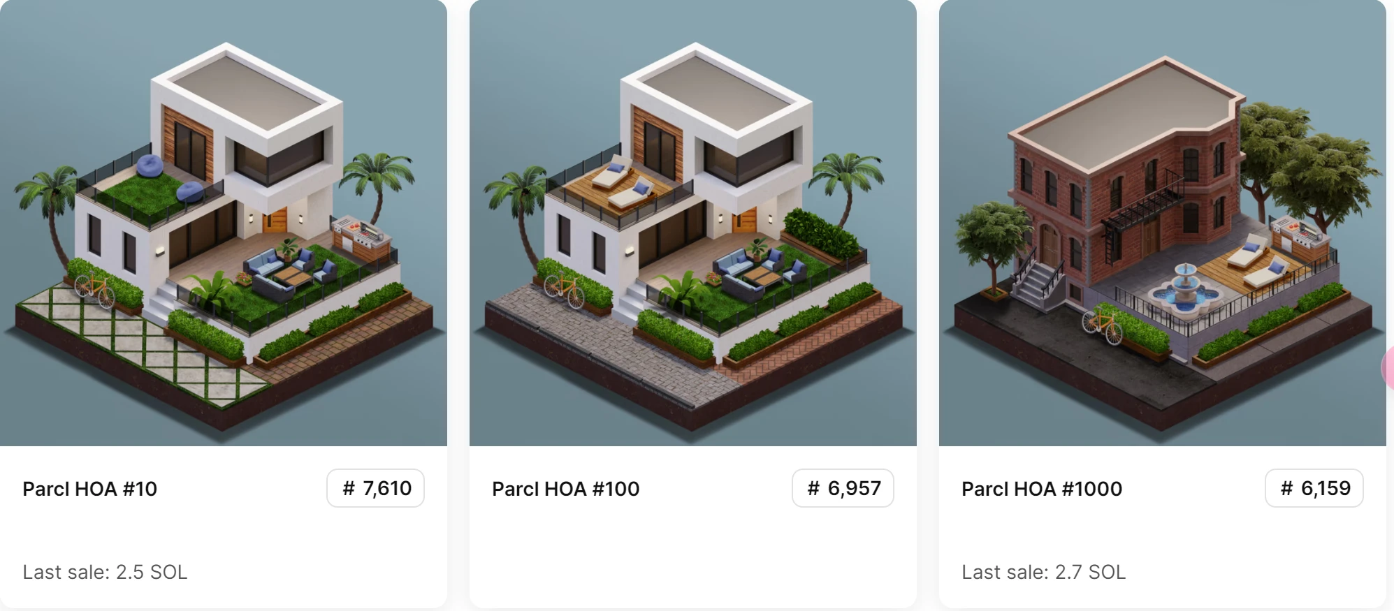 NFT 持有者:Parcl 在 2022 年 5 月发行的“Homeowners Association”,发行价 0.5 SOL,此前跌破发行价,但此前半年,价格涨至 15 SOL,目前 Opensea 上无人售卖。