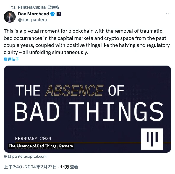 Pantera Capital:黑天鹅的缺席,就是本轮牛市最大的利好