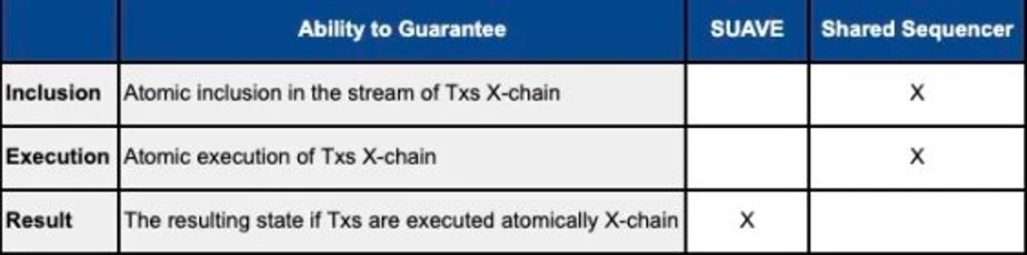 SUAVE 并不取代 Rollup 选择区块的机制,也不会改变链的分叉选择规则。它专注于为任何链提供最优利润的排序,通常拥有完全状态以模拟不同交易的结果并创建最佳排序。这种设计允许 SUAVE 与共享排序器或其他 MEV-aware 构建者协作,以提供原子跨链套利等服务,确保若干交易以原子方式执行或同时取消。