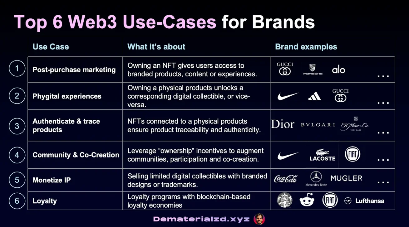我们看到了品牌的六个主要 Web3 用例: