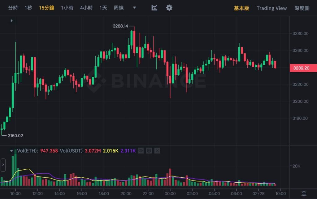 另一方面,以太坊(ETH)走势与比特币接近,但稍嫌弱势。在做晚最高触及 3,288 美元之后,目前持续在高点窄幅震盪,截稿前暂报 3,239 美元,近 24 小时上涨 1.8%。