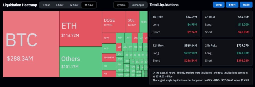在比特币快速跌破 6 万美元的急杀状况下,据 Coinglass 数据 显示,过去 24 小时,加密货币全网爆仓金额超过 7.3 亿美元,爆仓人数来到惊人的 18 万人。