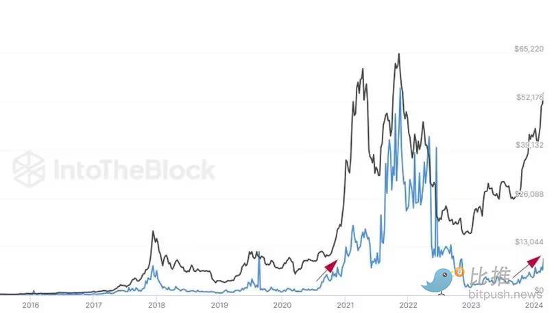 IntoTheBlock 分析师表示,链上数据、网络搜索显示,在比特币涨至 60,000 美元以上的过程中,散户投资者的参与度较低。