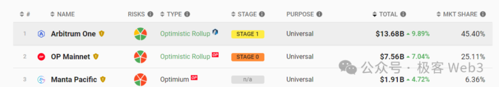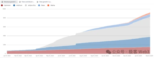 存款积分制的空投预期,对于 TVL 数据的增长几乎是立竿见影的,成为当前以太坊 Layer 2 的破局之道。由于 ZK 系 Layer 2 在主网启动时正值熊市,ZkSync、Starknet 的 TVL 表现一直不温不火,Manta、ZKFair 等则竞相效仿 Blast,仅用了较短时间便在 TVL 数据上超越了前述的 ZK 天王,在空投结束一段时间后仍然维持着不错的数据表现。