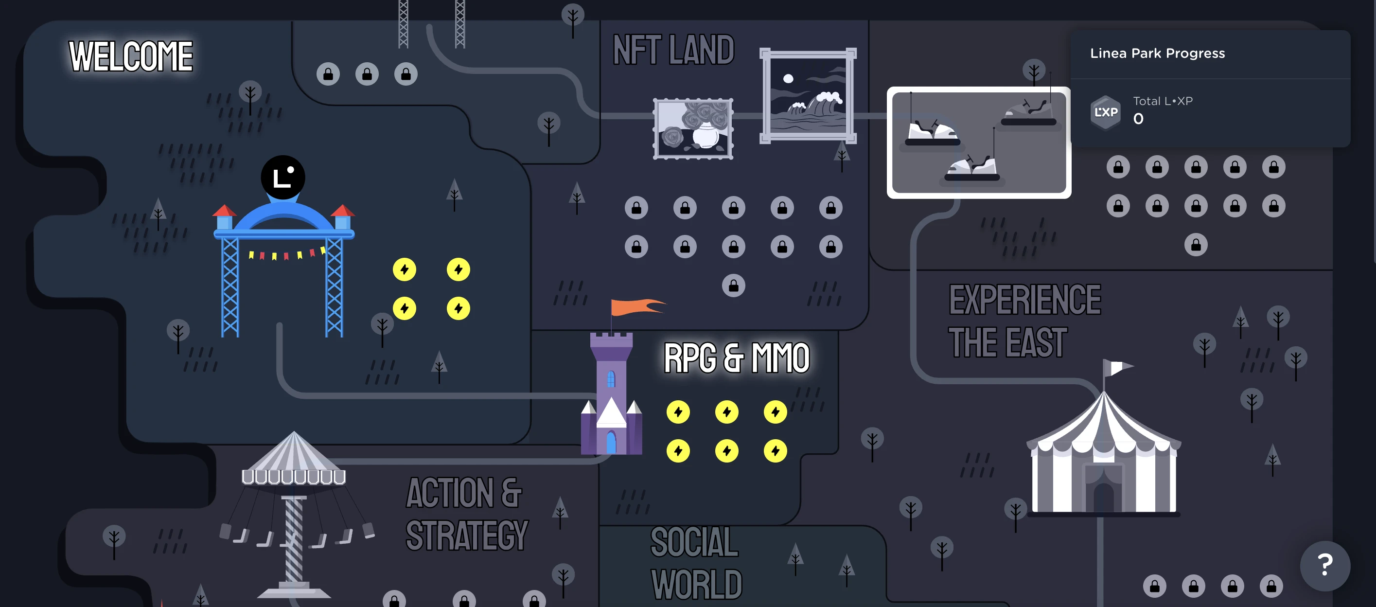 Linea Park 结合了链游和 SocialFi 元素,玩家的探索方式类似于线下游玩一家分为多个区域和板块的主题乐园。