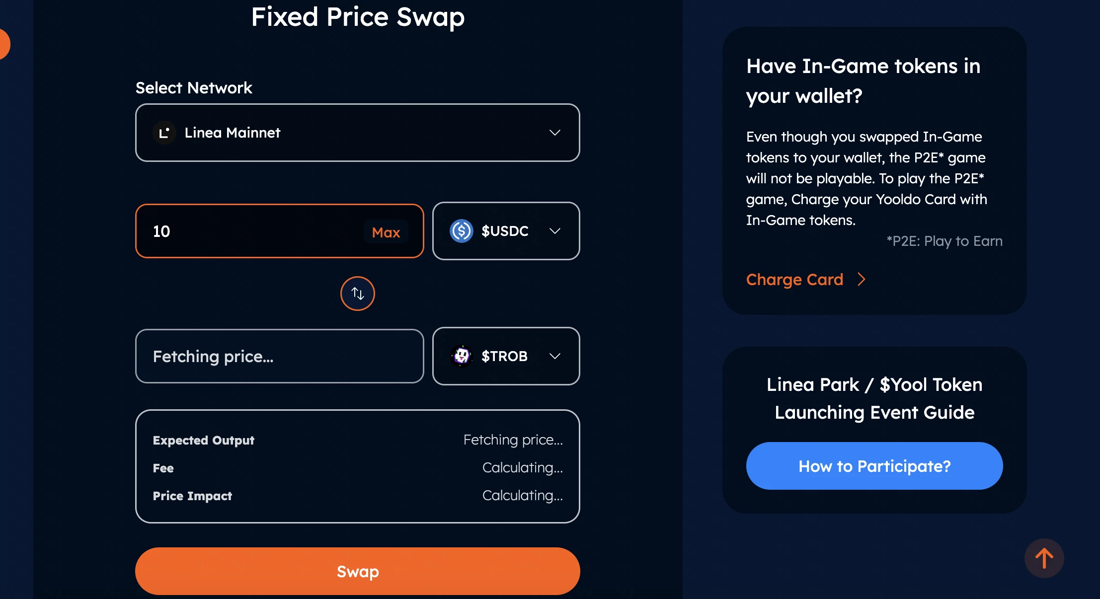 第三步,进入 Swap 界面,将 USDC 兑换成 TROB。
