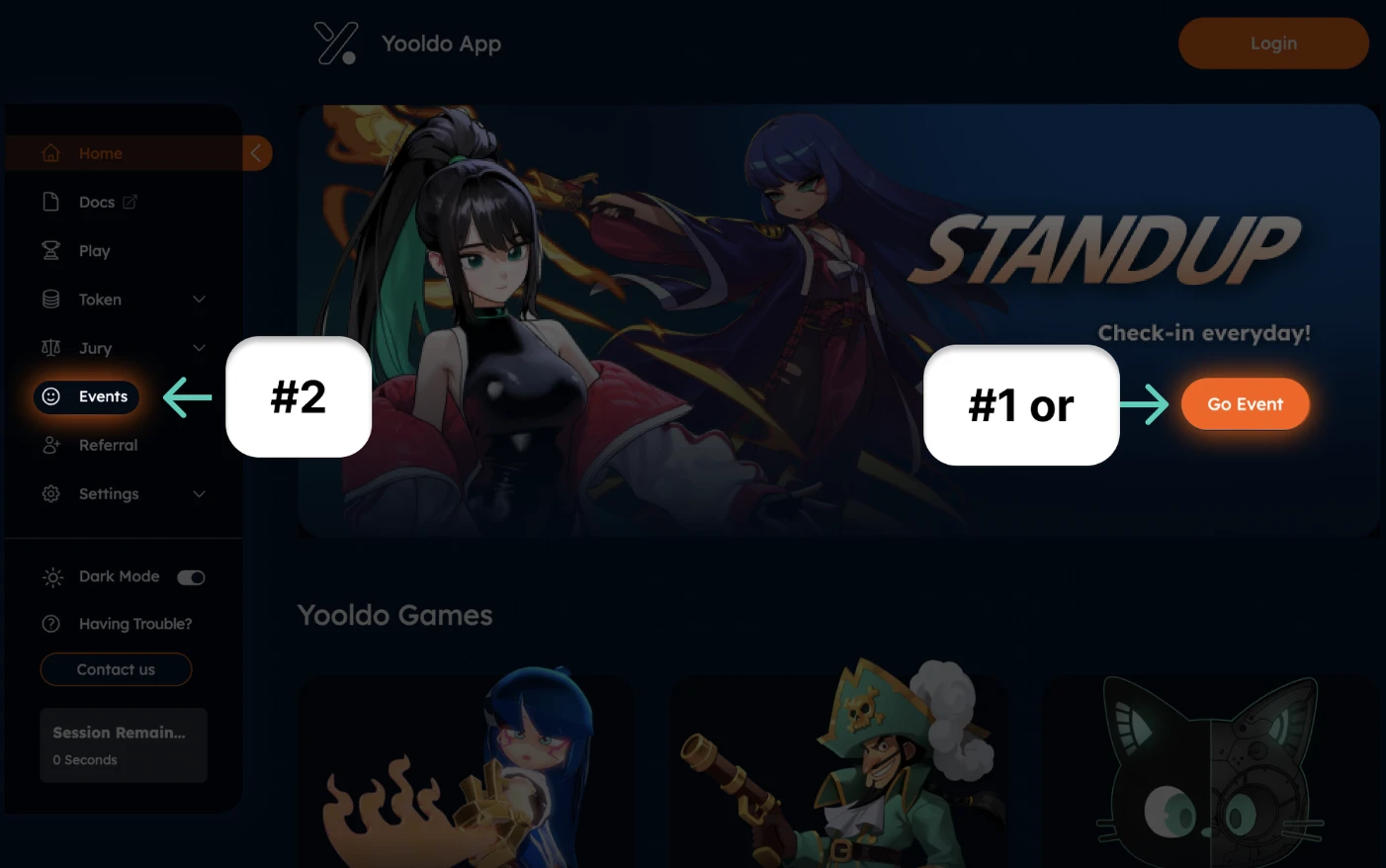 第二步,点击左侧拦 Events 或者右侧的 Go event,进行每日签到活动。