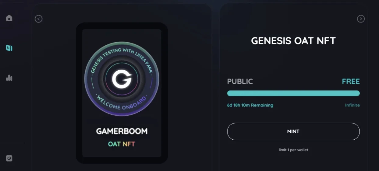 首先,打开 GamerBoom,点击「Yes,Lets $Boom」钱包确认,然后输入邮箱,填写验证码,输入个人基本信息(名字、头像、密码)就可以完成验证。 最后,Mint 一个免费的 OAT,钱包确认即可。