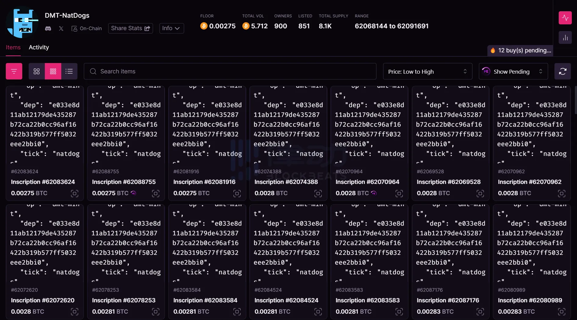首先,你看到的 DMT 小图片都是代码渲染后的结果。现在您如果到 Magic Eden 上查看 NATTRIBUTES 和 Natdogs 的合集,会发现是这样的: