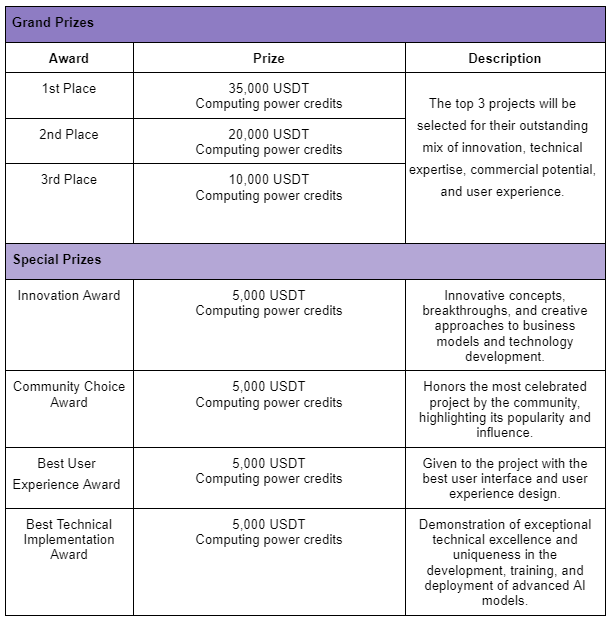 丰厚的现金奖励、优异的算力网络、强大的社群支持、顶尖的工具及资源、高额的孵化基金。