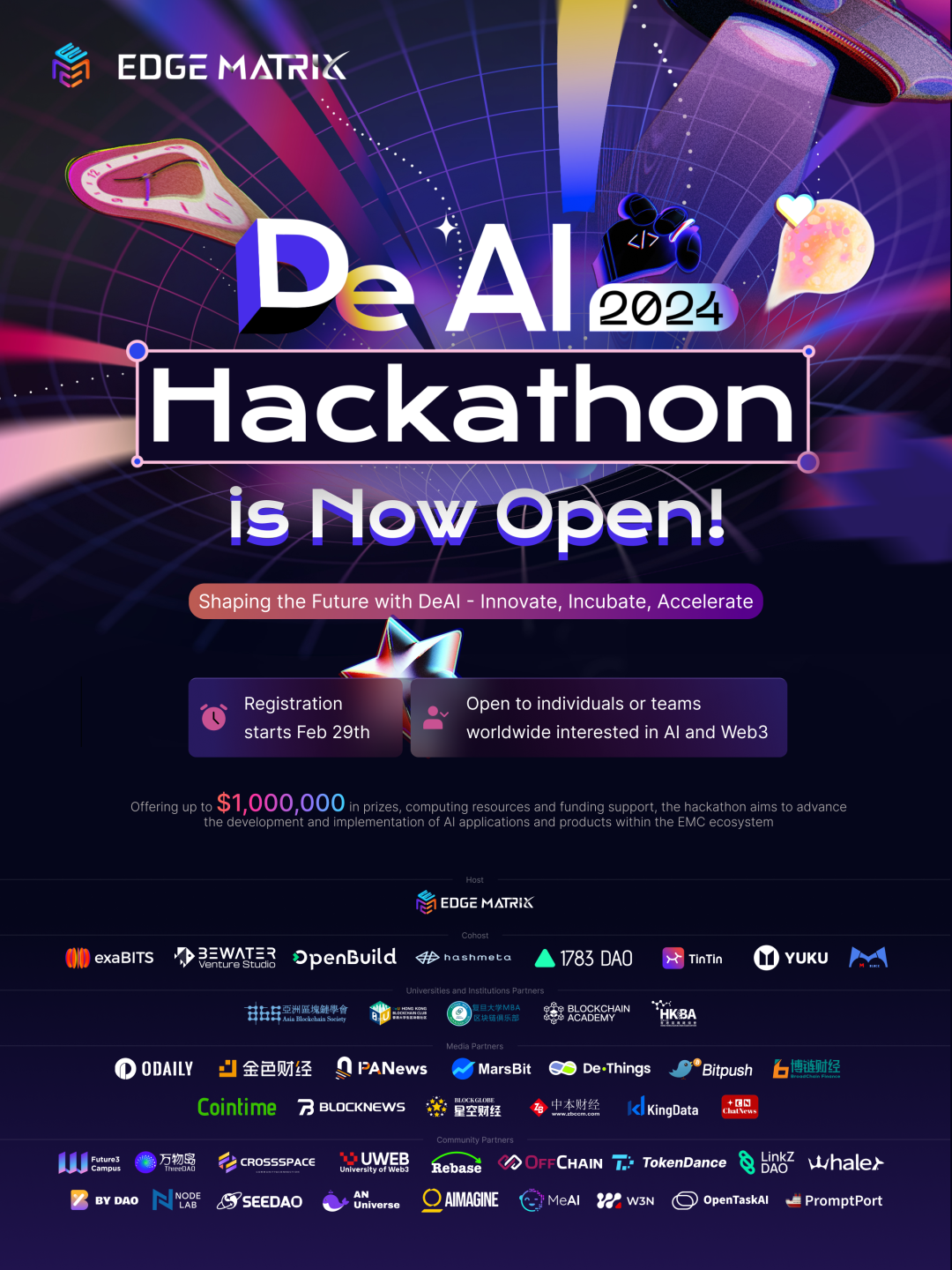 2024 DeAI黑客松大赛全球报名开启!百万美元奖金助力AI+Web3创新