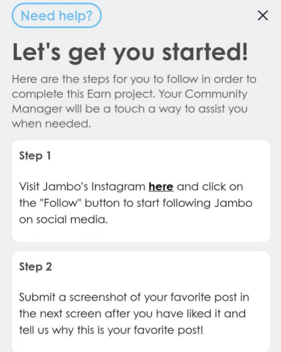 而 Jambo 目前内置的任务基本都是一些软件下载、社媒关注 / 点赞之类非常 Web2 的动作,任务验证的方法还是提交截图......