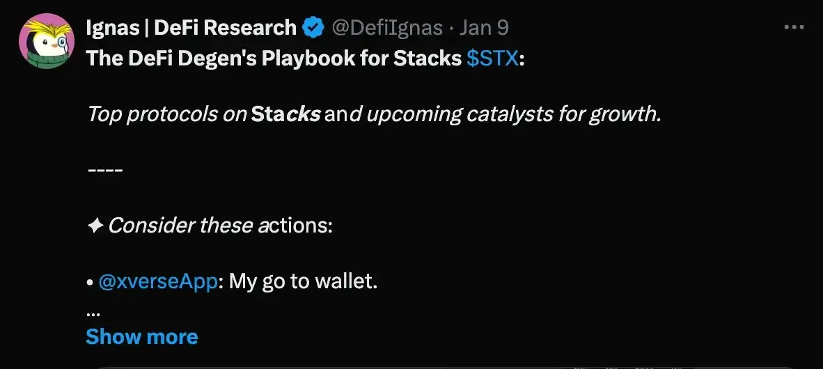 Stack 的 STX 在一周内上涨了 75% ,因为团队正在为 Nakamoto 升级做准备。这将把区块时间从无法使用的 10 分钟缩短到 5 秒。这是一个重大的升级,使 Stacks 终于变得好玩起来。我预计在 Stacks 生态系统中会有更多的 dApp 和空投。