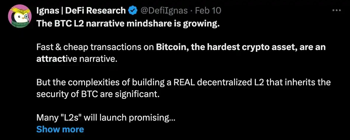 Stacks 并非唯一的(但可能是主要的)比特币 L2 解决方案。比特币 L2 的叙事正变得越来越受关注,尤其是有多个 L2,尤其是 Merlin,计划在减半事件周围启动。